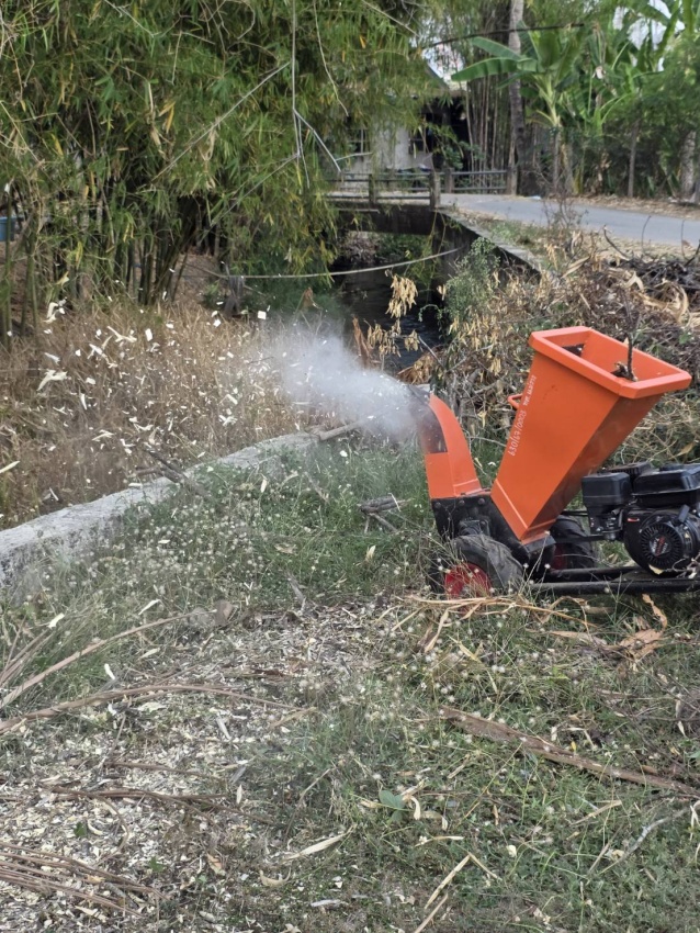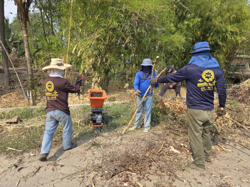 วันนี้เรานำกิ่งไม้ต้นไม้แห้งที่เก็บรวบรวมได้ในพื้นที่ มาผ่านกระบวนการ "โม่และย่อยสลาย" ให้กลายเป็นชิ้นเล็กชิ้นน้อย เพื่อเปลี่ยนจากขยะที่ไม่มีมูลค่า ให้กลายเป็นวัสดุชั้นดีสำหรับต้นไม้