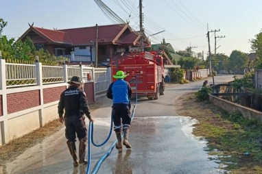 เทศบาลตำบลแม่วาง รุดฉีดพ่นละอองน้ำ บรรเทาวิกฤตฝุ่น PM 2.5 เร่งลดผลกระทบต่อสุขภาพประชาชน