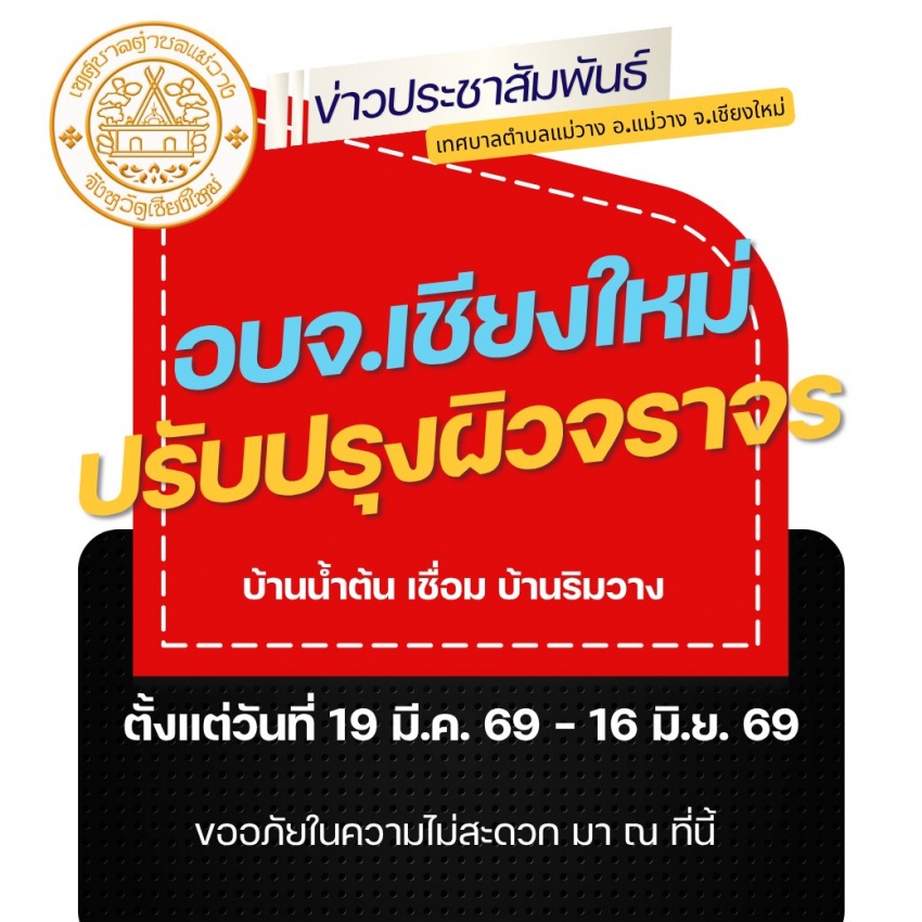 ประชาสัมพันธ์ จาก อบจ.เชียงใหม่ ในการปรับปรุงผิวจราจรแบบ Over-Lay ด้ายแอสฟัลต์คอนกรีต บ้านน้ำต้น หมู่ที่ 6 ต.บ้านกาด (เขตเทศบาลตำบลแม่วาง) เชื่อม บ้านริมวาง หมู่ที่ 7 ต.บ้านกาด (เขต อบต.บ้านกาด) ????????