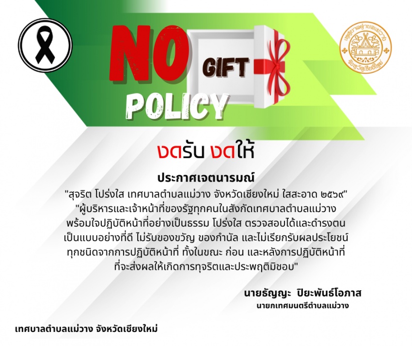 นโยบายการไม่รับของขวัญและของกำนัลทุกชนิดจากการปฏิบัติหน้าที่ No Gift Policy